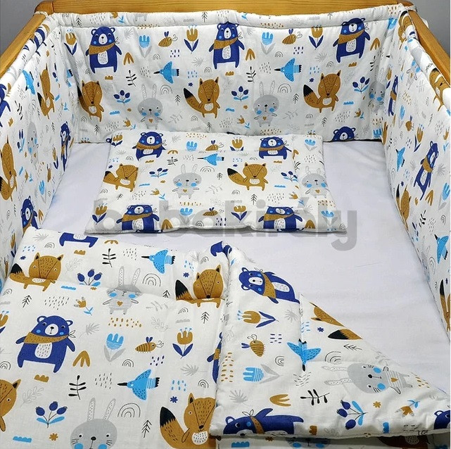 3 részes baba ágynemű szett erdei állatok kék