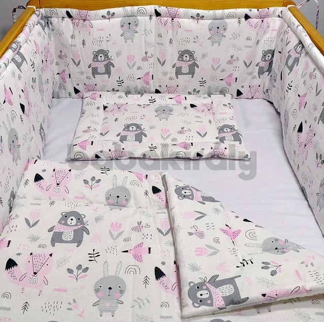 3 részes baba ágynemű szett erdei állatok rózsaszín