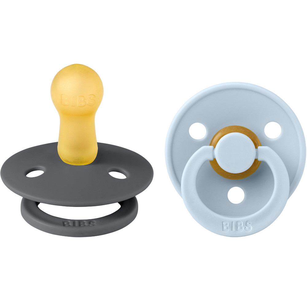 BIBS játszócumi - Colour natúr kaucsuk 6-18 hó grafit és pasztellkék 2 db
