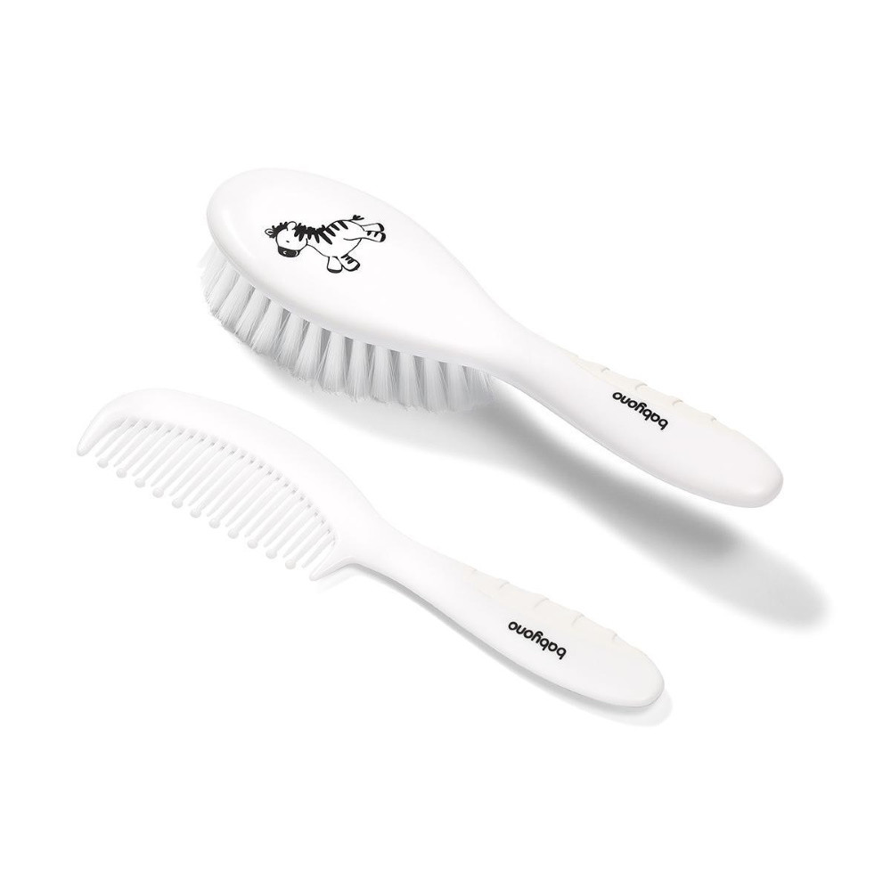 A hajkefe és a fésû nyele is csúszásgátló gumival van bevonva, hogy a kefélést és a fésülést könnyebbé és kényelmesebbé tegye. Tökéletesen masszírozza a baba bõrét, és antisztatikus tulajdonságainak köszönhetõen nem vesz fel sztatikus elektromosságot. A készletben található fésû lekerekített hegyû, így a baba fejbõrét nem irritálja.