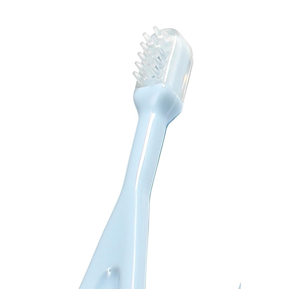Egy gyengéd fogkefekészlet elengedhetetlen a babák napi szájhigiéniájához. A készlet 3 kefét tartalmaz: az elsõ szilikon kefét az íny masszírozására tervezték azoknak a babáknak, akiknek még nincsenek fogaik, a második szilikon kefét a kis fogak tisztítására, a harmadik puha sörtéjû kefét pedig idõsebb gyermekek számára tervezték. A kefék tökéletesek a fogtisztítás elsajátításához.