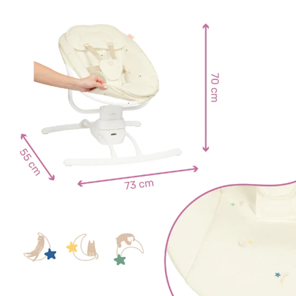 Fejtámasza és az újszülöttek hátához igazodó formája rendkívül kényelmessé teszi ezt a hintát, ideális egy pillanatnyi pihenéshez vagy ébredéshez, születéstõl kezdve :)