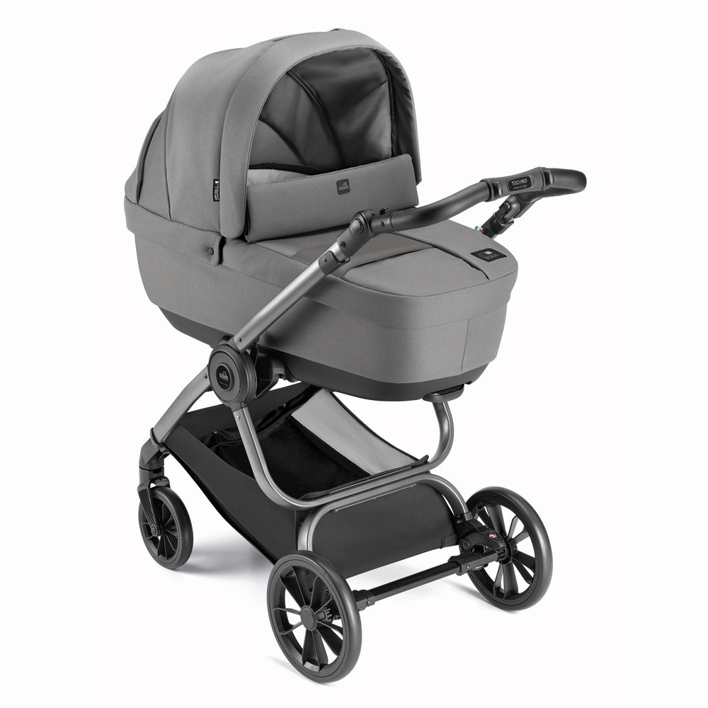 Tartalma: Techno váz, mózeskosár, babakocsi ülés, pelenkázótáska.