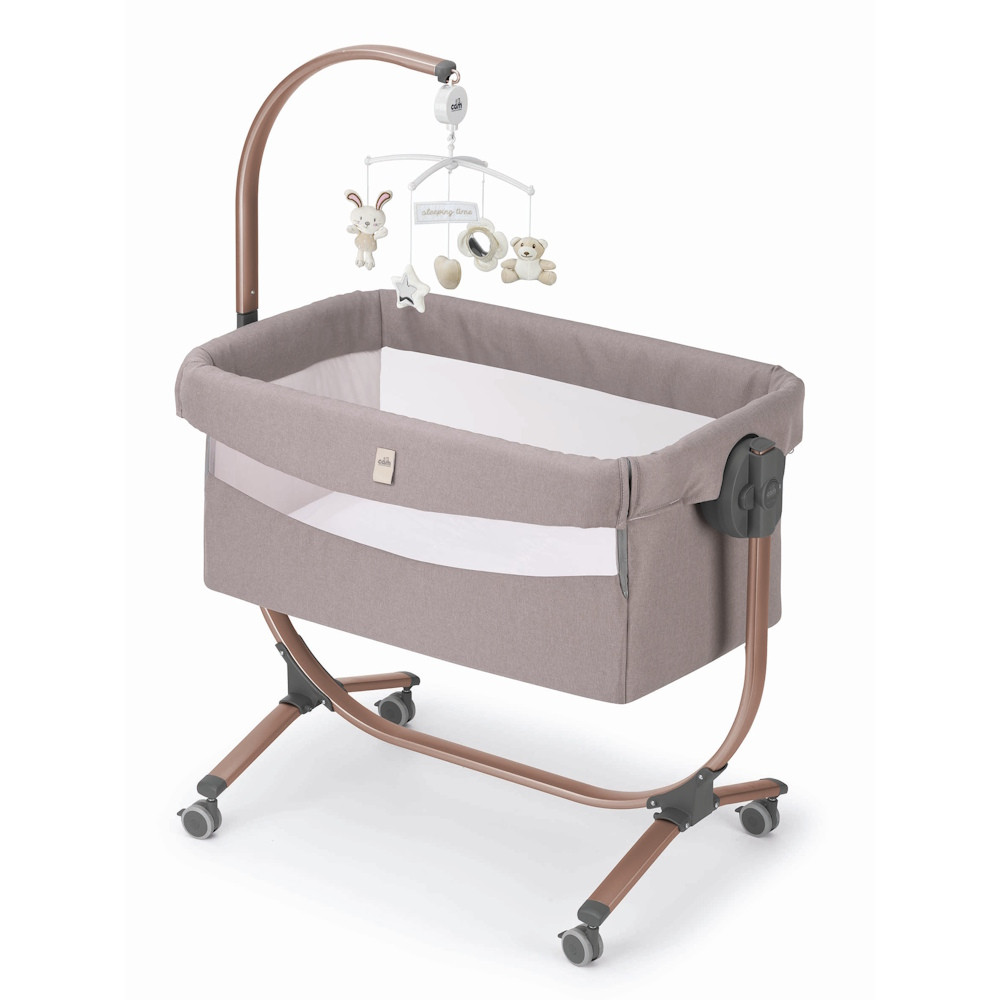 Tartalma: fém váz, levehetõ rúd szúnyoghálóhoz és zenélõ forgóhoz, puha matrac, puha anyagú belsõ huzat, hálós ablak. Levehetõ és kézzel, maximum 30°C-on mosható anyagok.