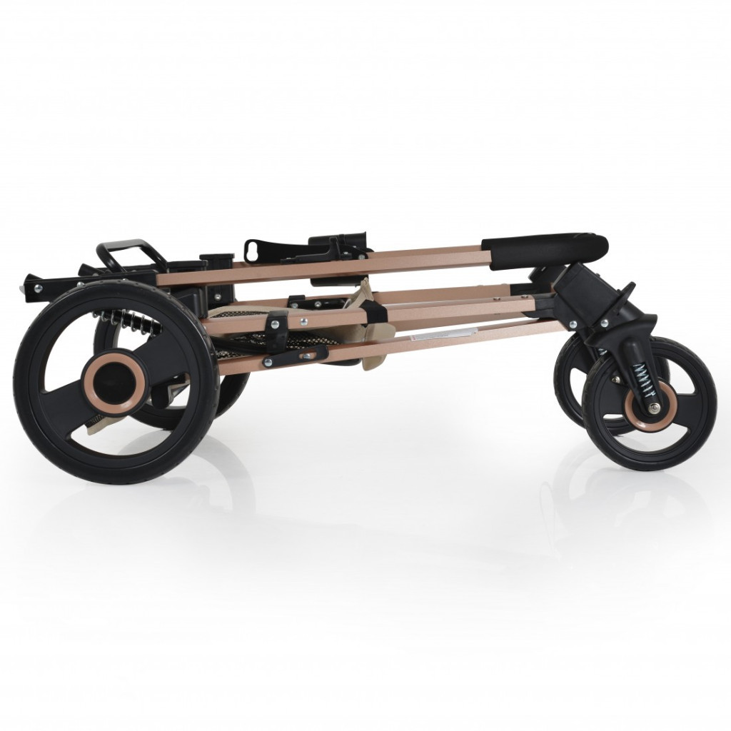 Mózeskosár mérete: 40x83x25cm Kiváló rugózás, nagyobb PU kerekekkel, bolygósítható első kerekekkel. Óarany/Rosegold váz.