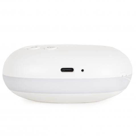 Hordozható fehérzaj készülék. Könnyű, hordozható, akasztóval. Fényhatások - 3 különböző szint és színváltás. 20 különböző nyugtató csengőhang, köztük fehér zaj, szívverés és természeti hangok. Időzítő - 30, 60 és 90 perc. USB töltőkábel. Akár 36 óra használat egy feltöltéssel. Hangerőgombok. CSAK A SAJÁT TÖLTŐJÉVEL KÉRJÜK TÖLTENI a termékszavatosság megőrzése érdekében.