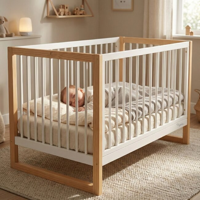 CANGAROO Sierra fa babaágy rácsos 60*120cm fehér/natur