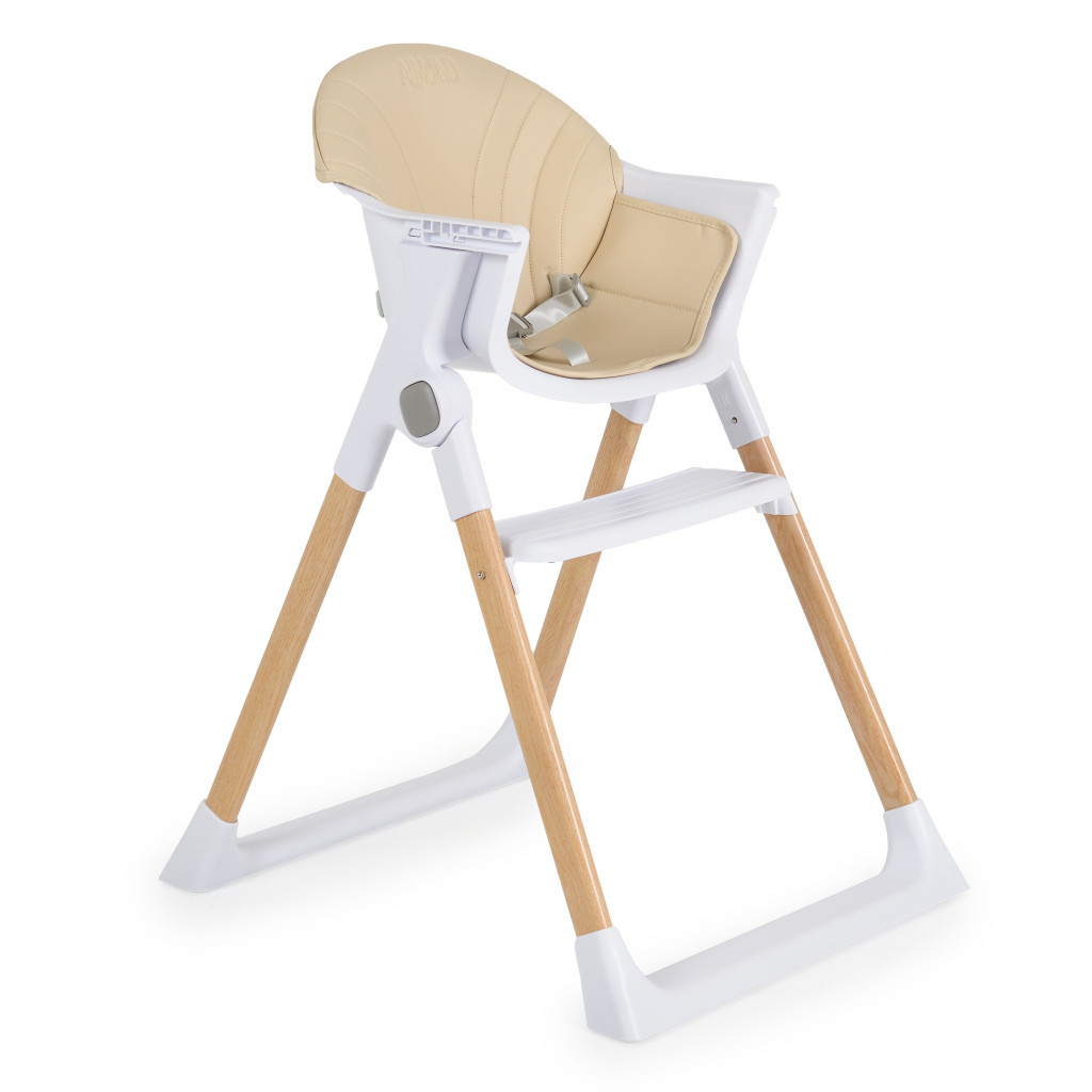 Cangaroo Almond etetőszék bőr ülés fa lábakkal bézs