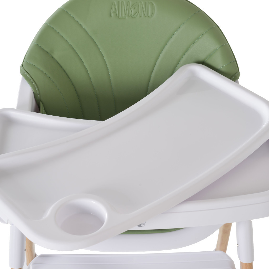 Cangaroo Almond etetőszék bőr ülés fa lábakkal zöld
