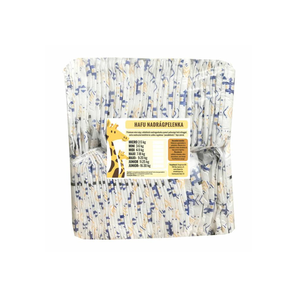 Első osztályú nadrágpelenkáink tömörített csomagolásban a kisbabás családok kedvence lesz. Kényelmes viselet a gumírozott széleknek köszönhetően, mintái elbűvölőek addig is, amíg a gyermek viseli. A könnyen cserélhető, extra jó nedvszívó képességű pelenkák bőrbarát, vegyszermentes anyagból készültek, garantáltan nem irritálják szemünk fényének bőrét. Magas minőségű termék ötvenesével csomagolva.