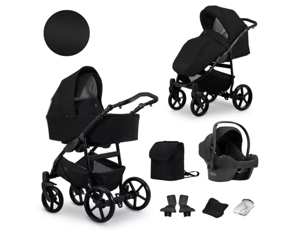 A 3in1 szettek tartalma: alumínium váz, prémium gél keréksor, mózes rész, sport rész, Cosmo autós babahordozó, adapterek a babahordozóhoz (segítségükkel a hordozó is a vázhoz rögzíthető), pelenkázó táska, lábzsákok, esővédő, szúnyogháló, tároló a váz aljára, levehető sportkarfa, pohártartó.
