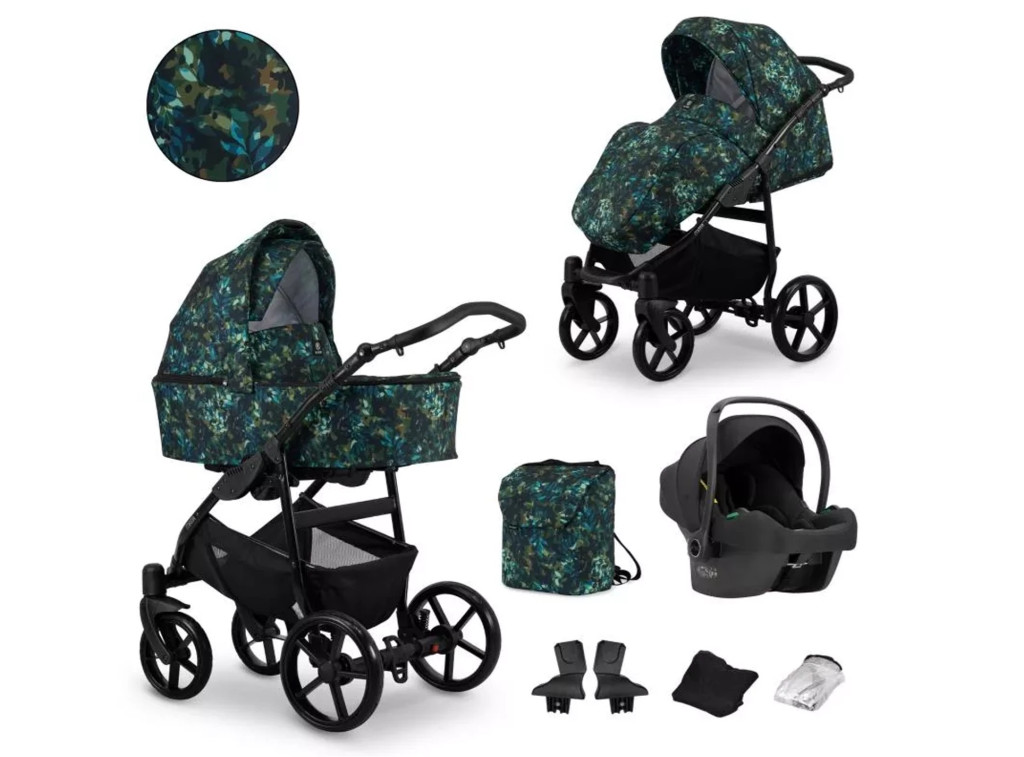 A 3in1 szettek tartalma: alumínium váz, prémium gél keréksor, mózes rész, sport rész, Cosmo autós babahordozó, adapterek a babahordozóhoz (segítségükkel a hordozó is a vázhoz rögzíthető), pelenkázó táska, lábzsákok, esővédő, szúnyogháló, tároló a váz aljára, levehető sportkarfa, pohártartó.