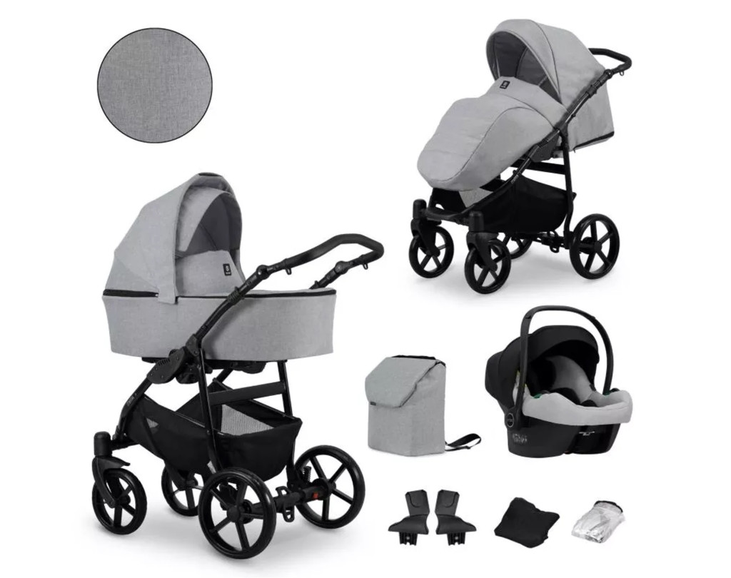 A 3in1 szettek tartalma: alumínium váz, prémium gél keréksor, mózes rész, sport rész, Cosmo autós babahordozó, adapterek a babahordozóhoz (segítségükkel a hordozó is a vázhoz rögzíthető), pelenkázó táska, lábzsákok, esővédő, szúnyogháló, tároló a váz aljára, levehető sportkarfa, pohártartó.