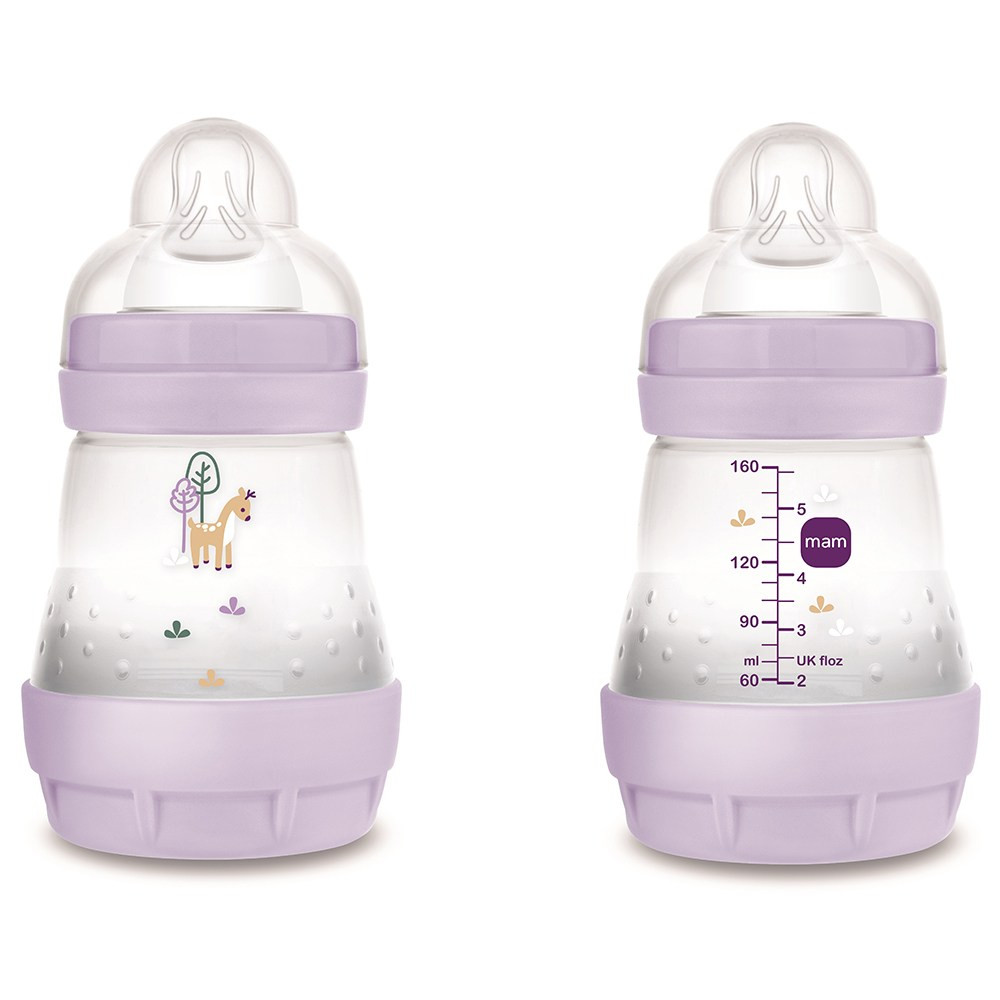 A természet ihlette színekkel és mintákkal ellátott 160 ml-es MAM Anti-Colic Matt Forest az ideális cumisüveg kisbabáknak: a babák saját tempójukban, teljesen ellazulva ihatnak.