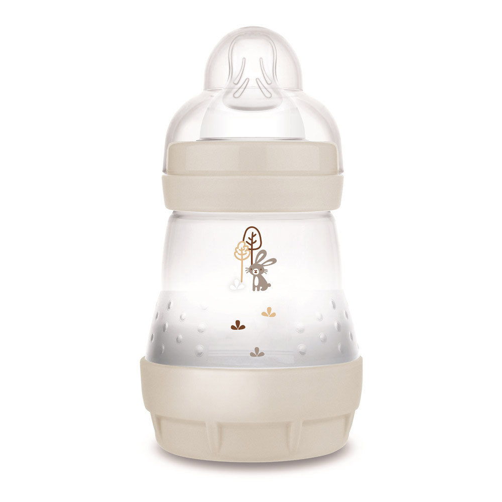 A természet ihlette színekkel és mintákkal ellátott 160 ml-es MAM Anti-Colic Matt Forest az ideális cumisüveg kisbabáknak: a babák saját tempójukban, teljesen ellazulva ihatnak.