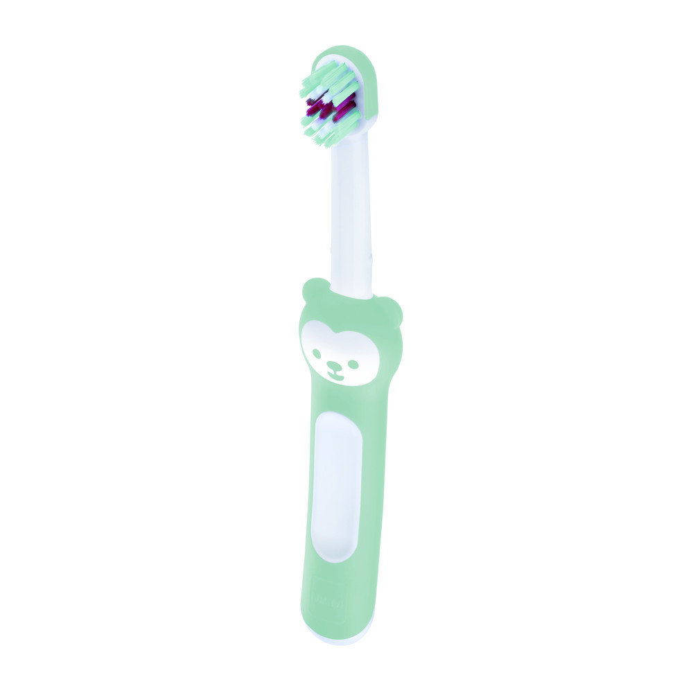Rövid, kompakt nyél, hogy a felnõttek fogmosó mozdulatait utánozni tudják.
