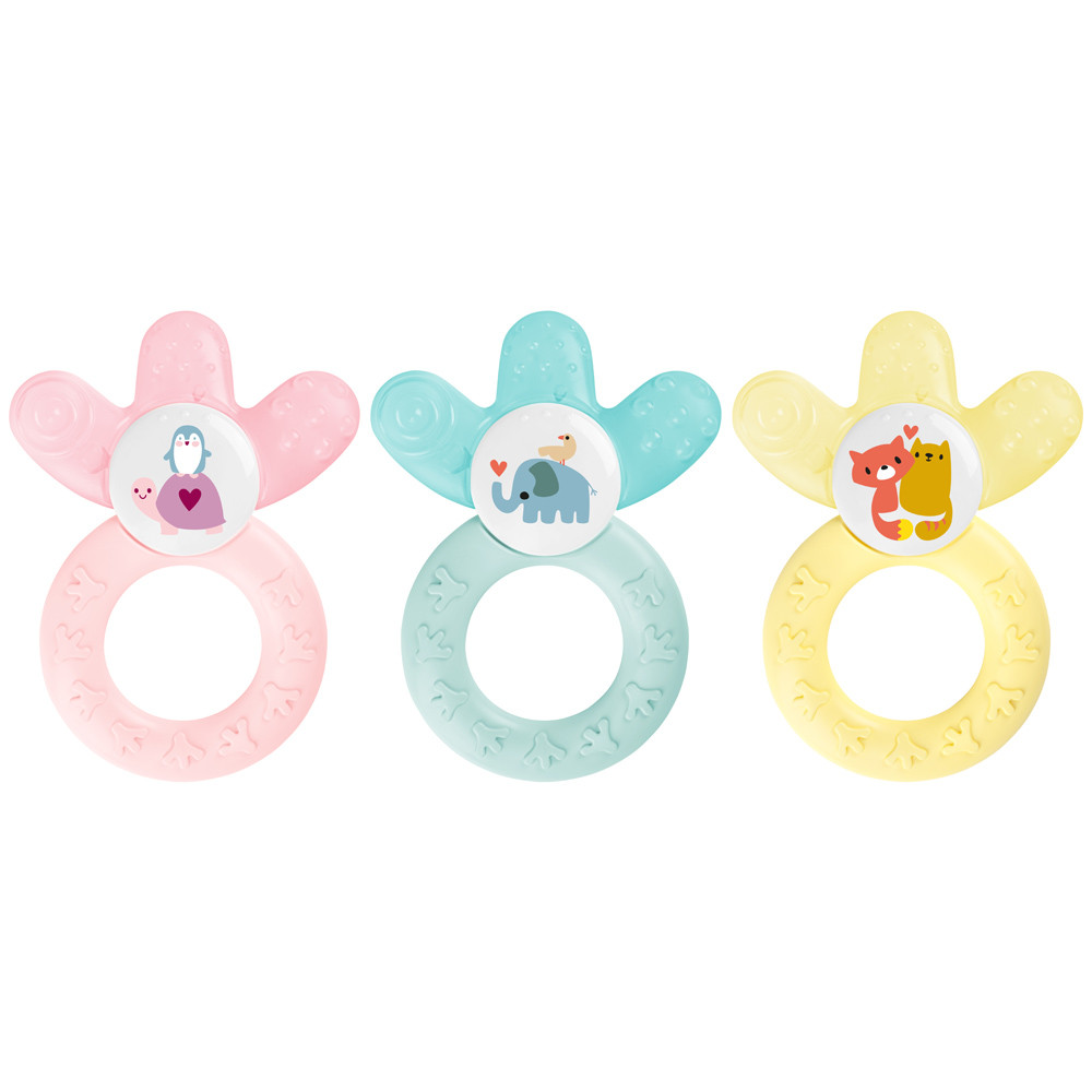 A változatos, strukturált rágófelület megkönnyíti a fogzást és a rágókát izgalmassá teszi a babák számára.