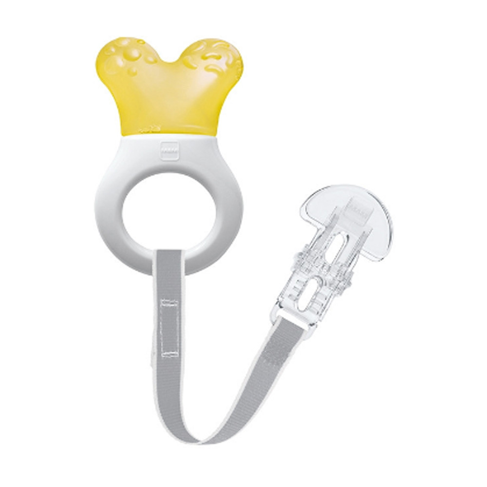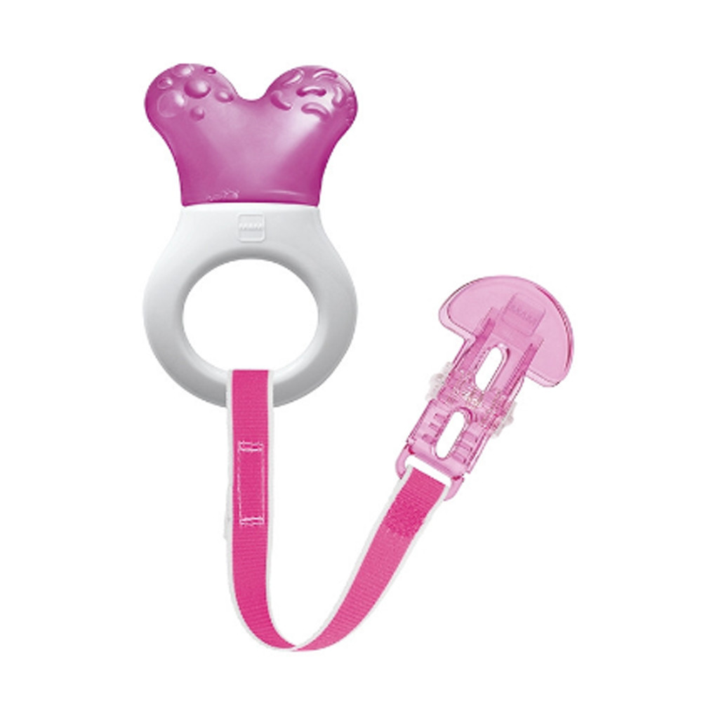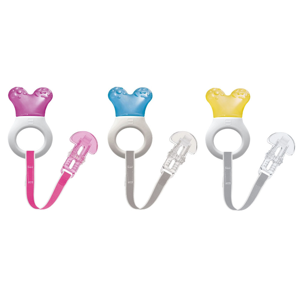 A strukturált felület és a hûthetõ rész megkönnyíti a fogzást, és a rágókát izgalmassá teszi a baba számára.