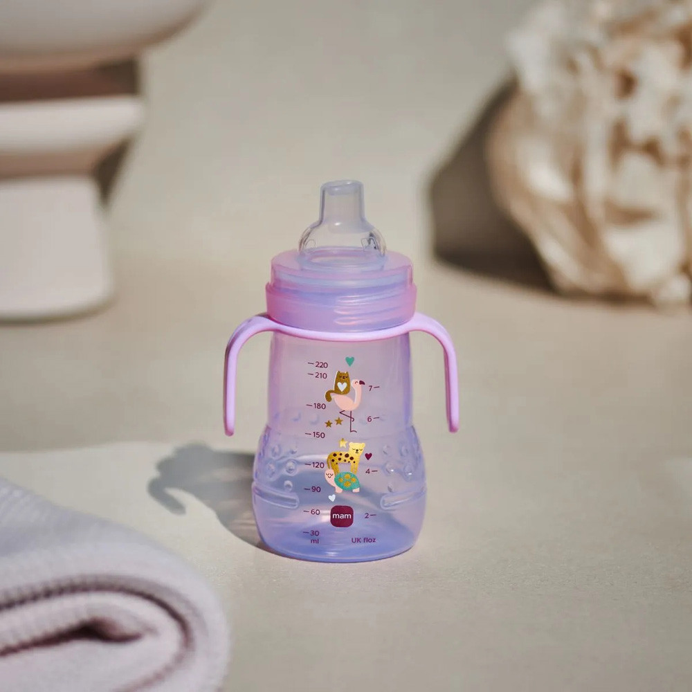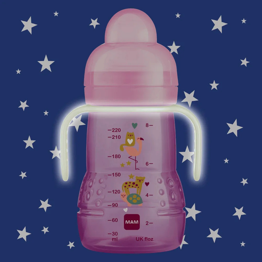 A MAM Trainer tanulópohár a sötétben világító fogókával, a funkcionalitás és dizájn tökéletes egysége.