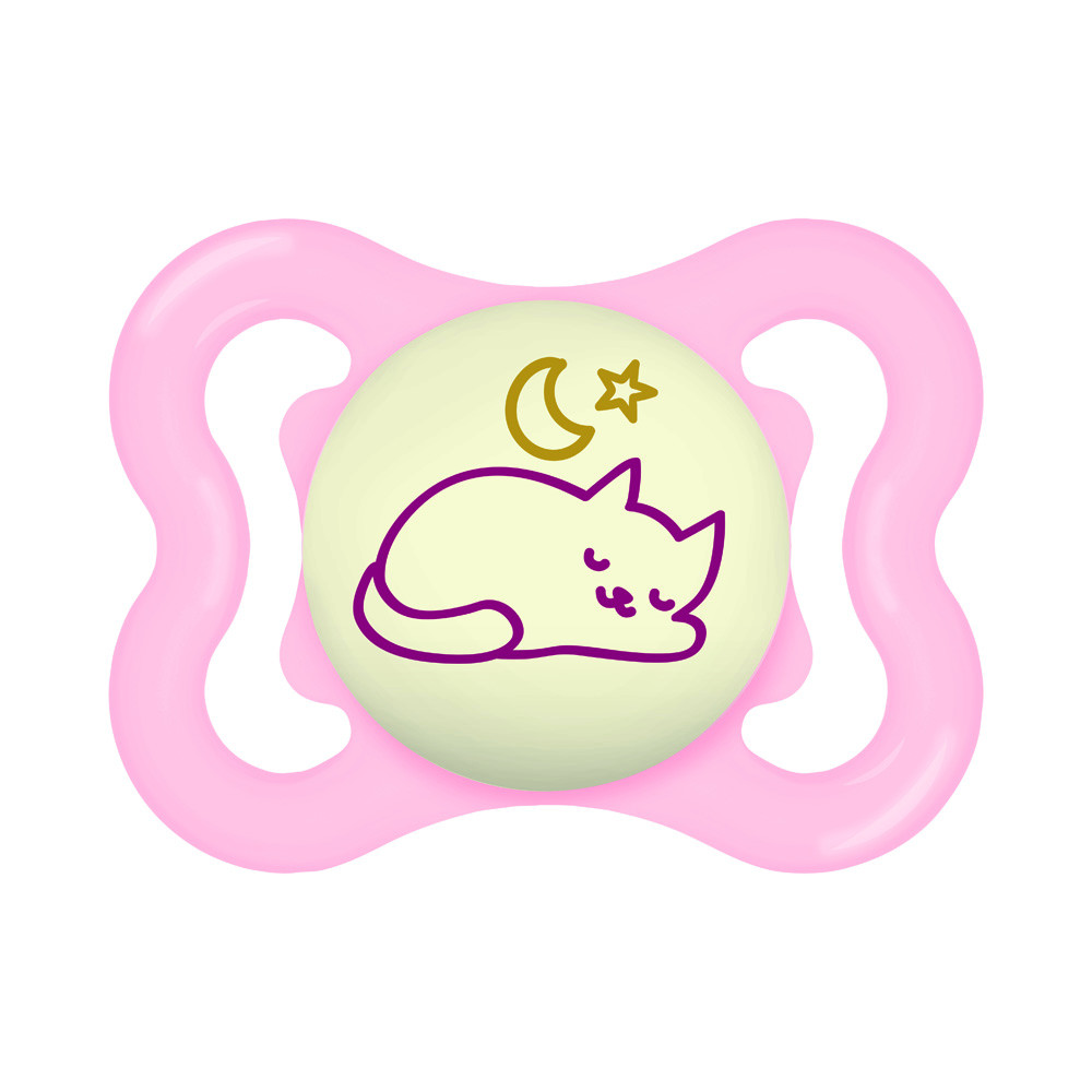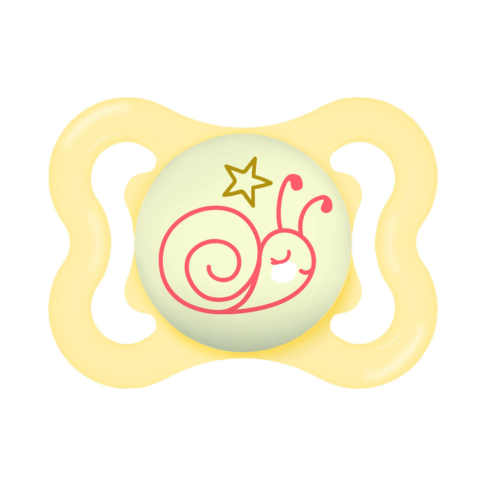 Az extra vékony és rugalmas szívóka lehetõvé teszi a zárt szájtartást, hogy a babák természetes módon tudják becsukni a szájukat cumizás közben. Ez a fogaknak elegendõ helyet hagy a normál növekedéshez. Az extra nagy szellõzõlyukaknak köszönhetõen különösen kíméletes a babák érzékeny bõréhez. A cumi gombja világít a sötétben.