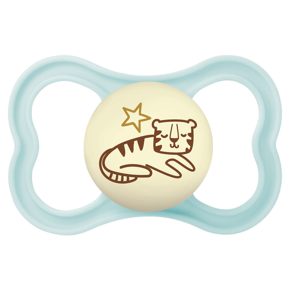 Az extra vékony és rugalmas szívóka lehetõvé teszi a zárt szájtartást, hogy a babák természetes módon tudják becsukni a szájukat cumizás közben. Ez a fogaknak elegendõ helyet hagy a normál növekedéshez. Az extra nagy szellõzõlyukaknak köszönhetõen különösen kíméletes a babák érzékeny bõréhez. A cumi gombja világít a sötétben.