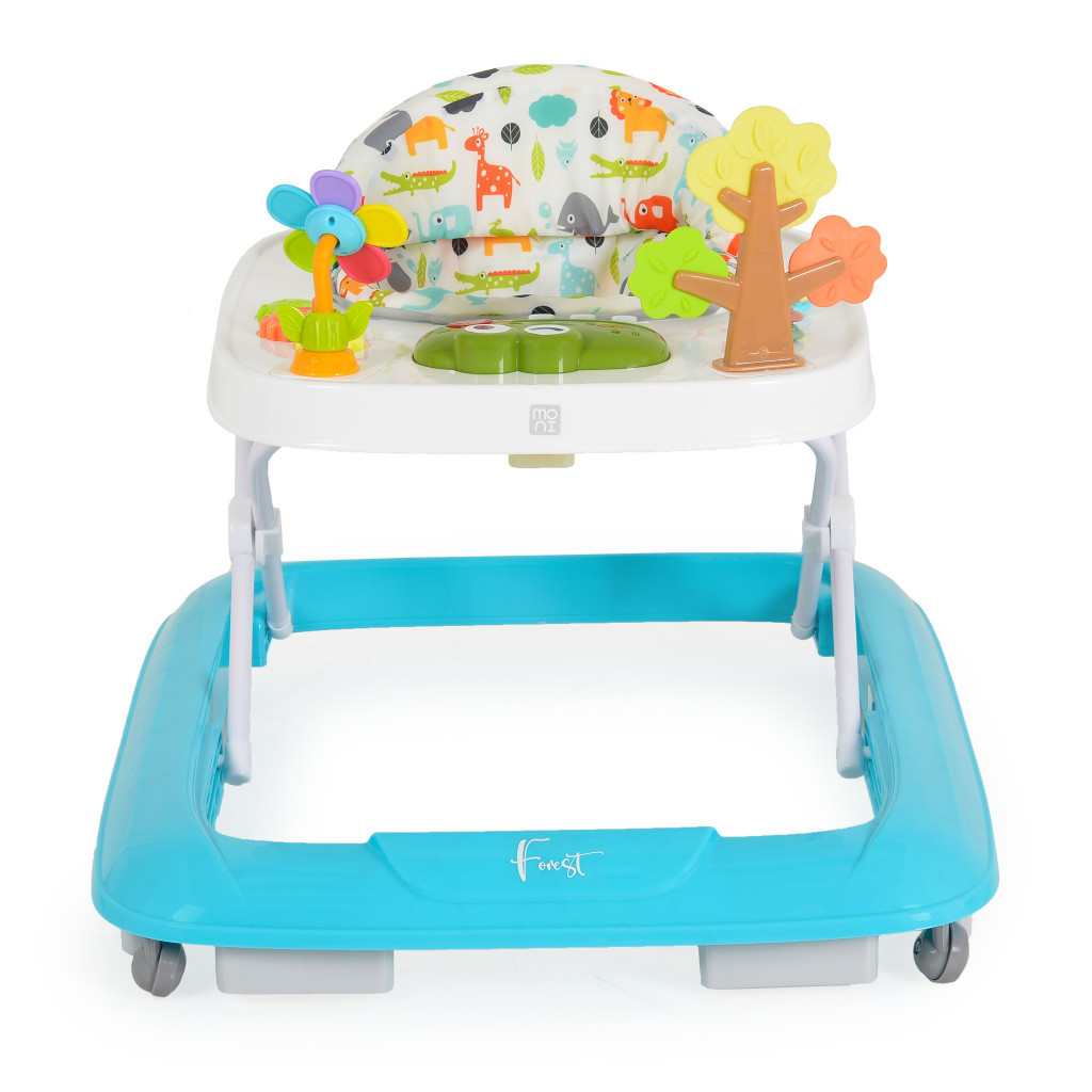 A Forest bébikomp 6 hónapnál idősebb és maximum 12 kg-os gyermekek számára készült. A modell érdekes kialakítású, 5 játékkal, 3 gombbal, 6 dallal (magyar népdal is megtalálható köztük!) 6 különböző nyelven és fényjelzéssel. A magassági szint 3 pozícióban állítható. A termék 4 kerékkel és 6 stopperrel rendelkezik. Használaton kívül kompakt méretűre összecsukható. A bébikompot szép színes dobozba van csomagolva, ami alkalmassá teszi ajándékozásra is.