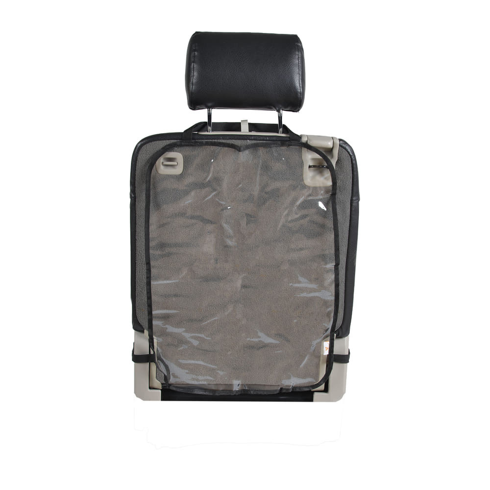 A DEFENDER ülés háttámla védő kitűnő választás, ha szeretnéd autód háttámláját megóvni a gyerekek lábának okozta kopástól és szennyeződéstől. A védő átlátszó PVC + nylon anyagból készült, 60 x 42 cm méretben, így tökéletesen illeszkedik az autóülésekhez. A rögzítés egyszerű és stabil: a Velcro és az elasztikus szalagok segítségével pillanatok alatt felszerelhető. Nem csak hasznos, de strapabíró és könnyen tisztítható is. A fekete szín pedig elegáns megjelenést kölcsönöz az autónak, miközben diszkréten védi az ülés háttámláját.