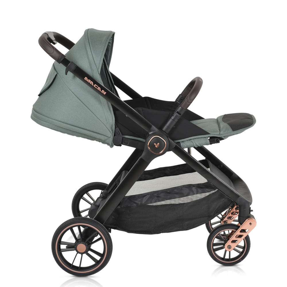 Ez a termék a MACAN 2in1 babakocsi ZÖLD kódú termék, ami egy CANGAROO Macan zöld babakocsi. Ez a babakocsi kiváló minőségű, és tökéletes választás városi és vidéki környezetben is. Akár 22 kg-ig is képes cipelni, és olyan kiegészítőkkel rendelkezik, mint a mózeskosár, nyári ülés, lábzsák, és mamatáska. Az első kerekek különleges kialakításúak, ami könnyebb manőverezhetőséget biztosít. Ez a babakocsi minden kalandra készen áll, legyen szó városi sétáról vagy vidéki kirándulásról. Az édesanyáknak pedig extra segítséget nyújt a hozzá tartozó mamatáska, amelyben minden fontos holmi elfér a pelenkától az etetőcumisüvegig. A zöld szín pedig igazán friss és élénk megjelenést kölcsönöz a babakocsinak.