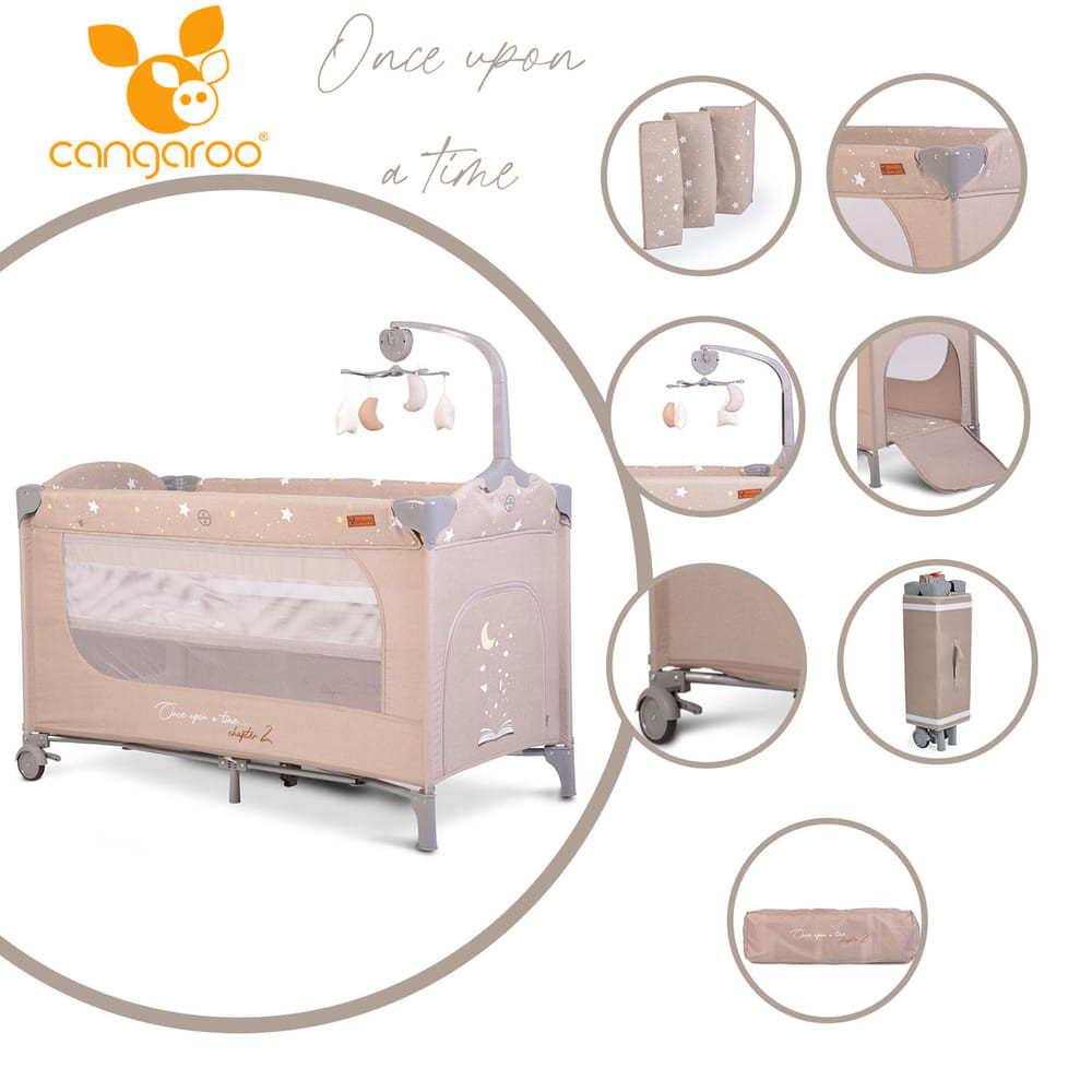 Cangaroo once upon2 2 szint utazóágy zenélő forgó játékkal bézs