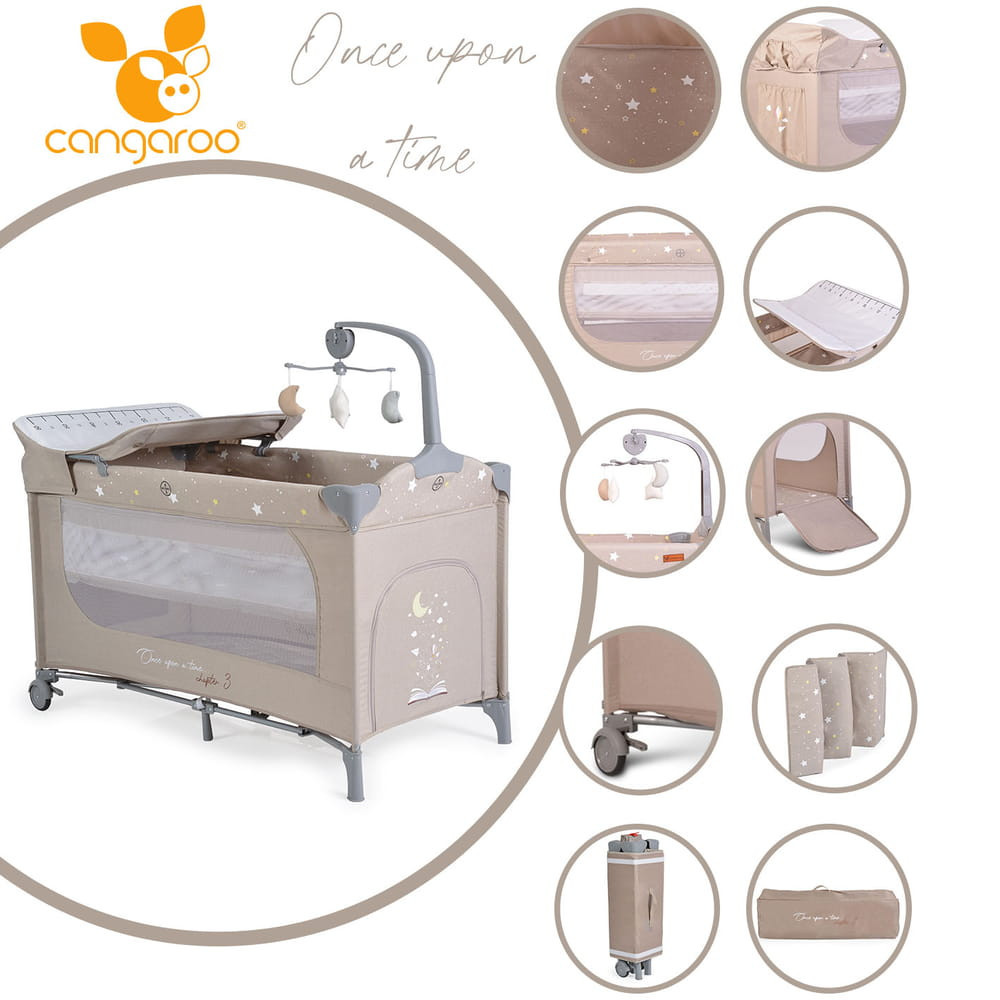 Cangaroo once upon3 2 szintes utazóágy zenélő játékkal, pelenkázós bézs