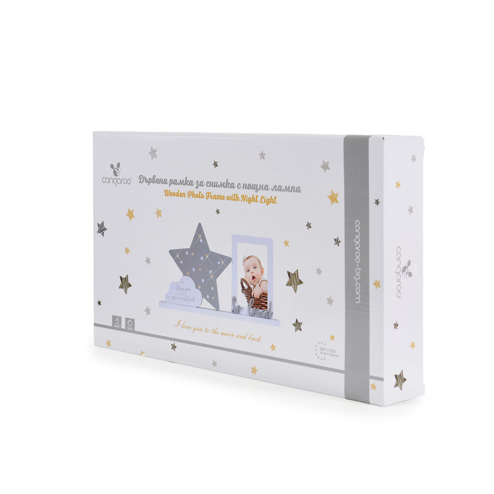 Ez a csillagos fotó váz több mint egy egyszerű képváz. Készült fából, ami természetes hangulatot kölcsönöz a kisgyermek szobájának, és integrált éjszakai fénye van, ami biztosítja a csendes és nyugodt alvást. Tökéletes dísztárgy bármelyik gyerekszobában, ahol az emlékeket szeretnénk megőrizni és a sötét éjszakákat valamivel barátságosabbá tenni. Különböző online boltokban kapható, amelyek babás és gyermek termékekre specializálódtak.