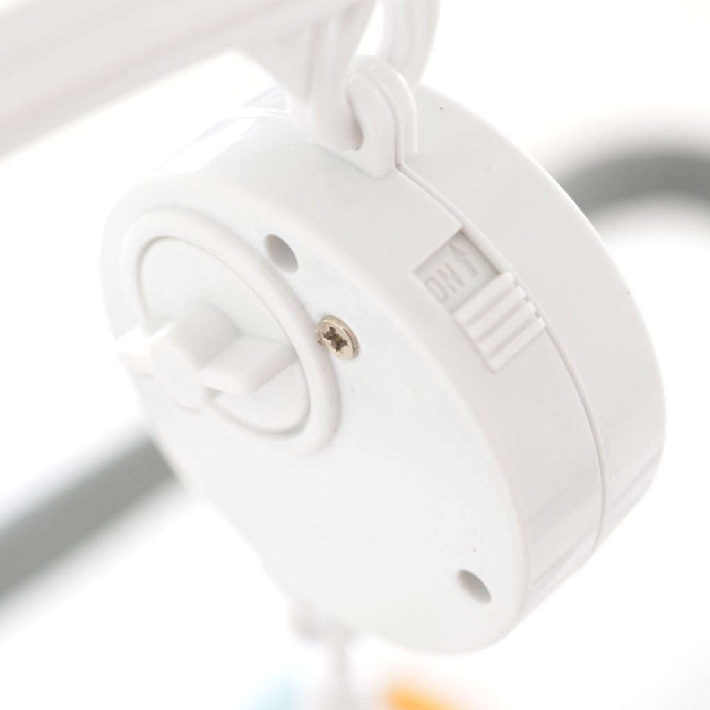Alkalmas 0 hónaposnál idősebb gyermekek számára. Serkenti a gyermek vizuális érzékelését. A lágy dallamok megnyugtatják a babát és meleg alvási környezetet biztosítanak, javítja a vizuális és auditív érzékelését, fejleszti a koordinációját és a különböző formák és színek azonosítását. Felhúzható mechanizmussal, altatódalokkal, puha játékokkal, a szabványos kiságyakhoz tervezve.