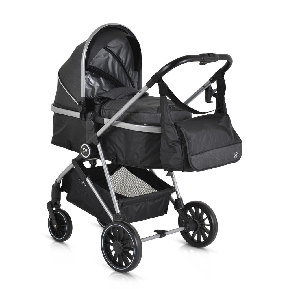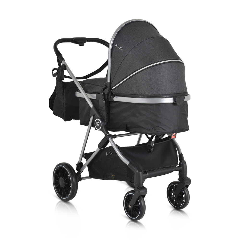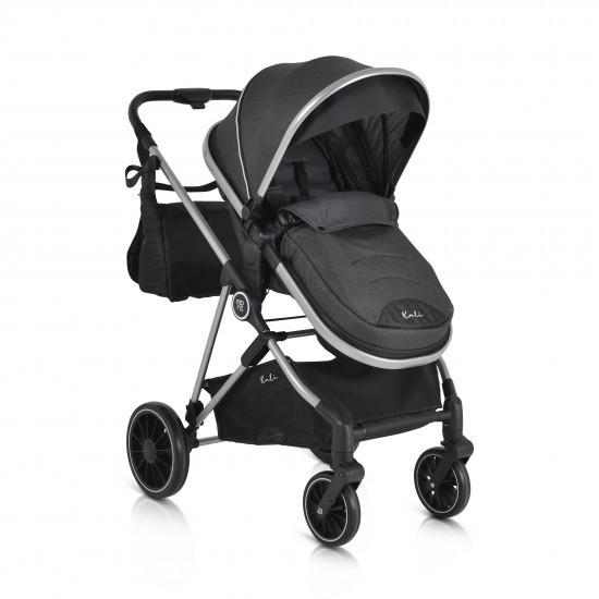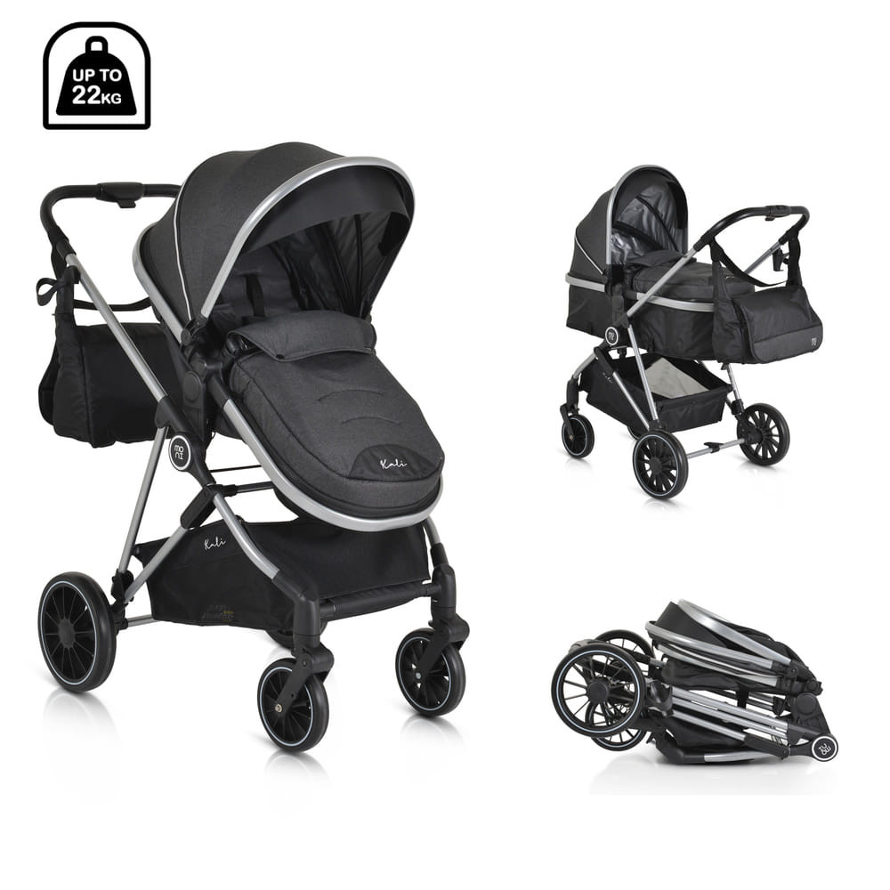 KALI babakocsi 2in1 lapra csukható, megfordítható+táska FEKETE, Praktikus és sokoldalú, a Kali babakocsi az ideális választás, könnyű és manőverezhető. Könnyen átalakítható újszülöttek számára készült mózeskosárból ülőrésszel, széles ülésével és további puha, levehető bélésével kényelmet és kényelmet biztosít babája számára.