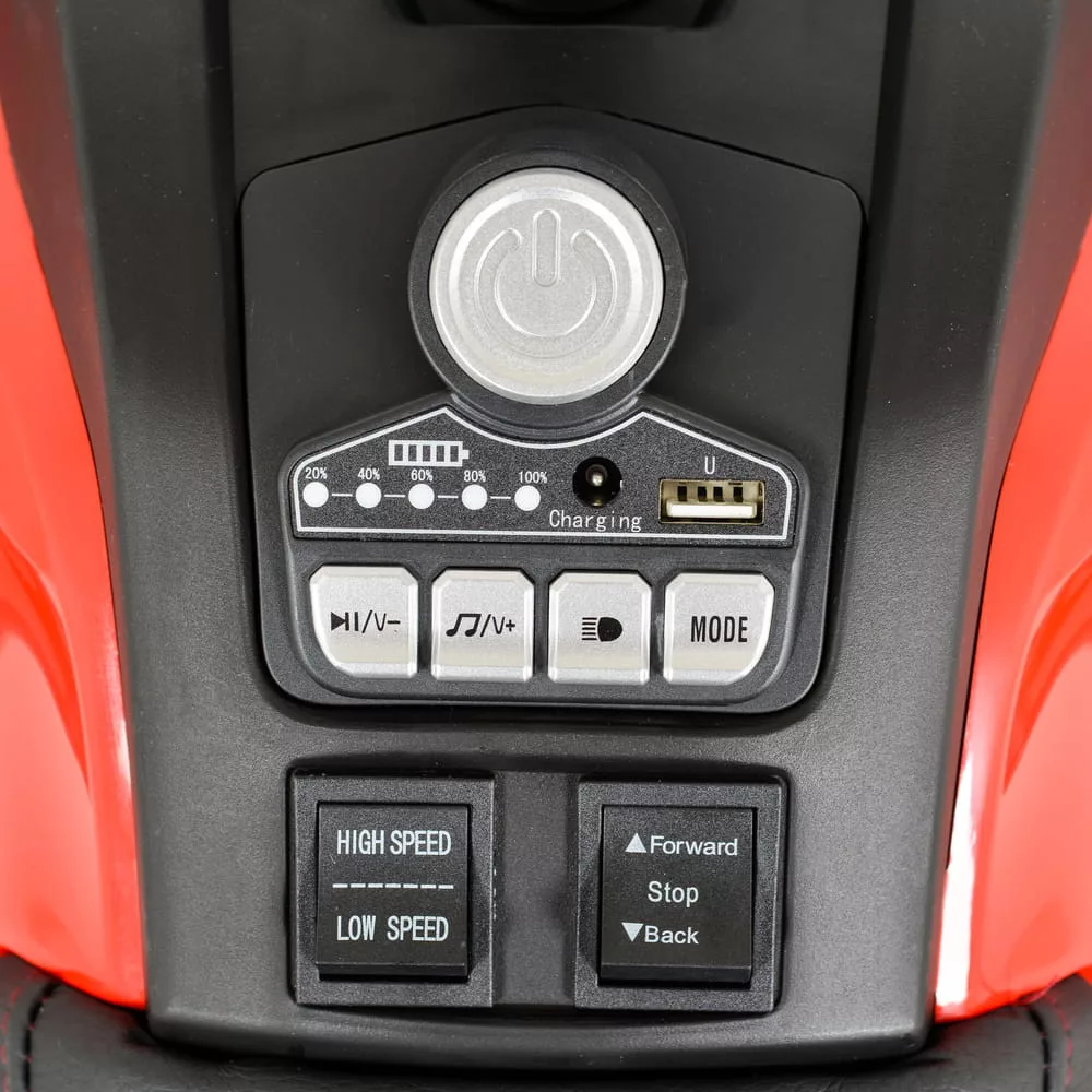 36 hónapnál idősebb gyermekeknek, akiknek a maximális súlya legfeljebb 30 kg; Akkumulátor - 1 * 12V / 7Ah; Négy motor 4 * 35W; EVA kerekek; 2 sebesség; Kapcsoló előre / hátra mozgatáshoz; Zenei funkciók; MP3 / USB; Első lámpák;