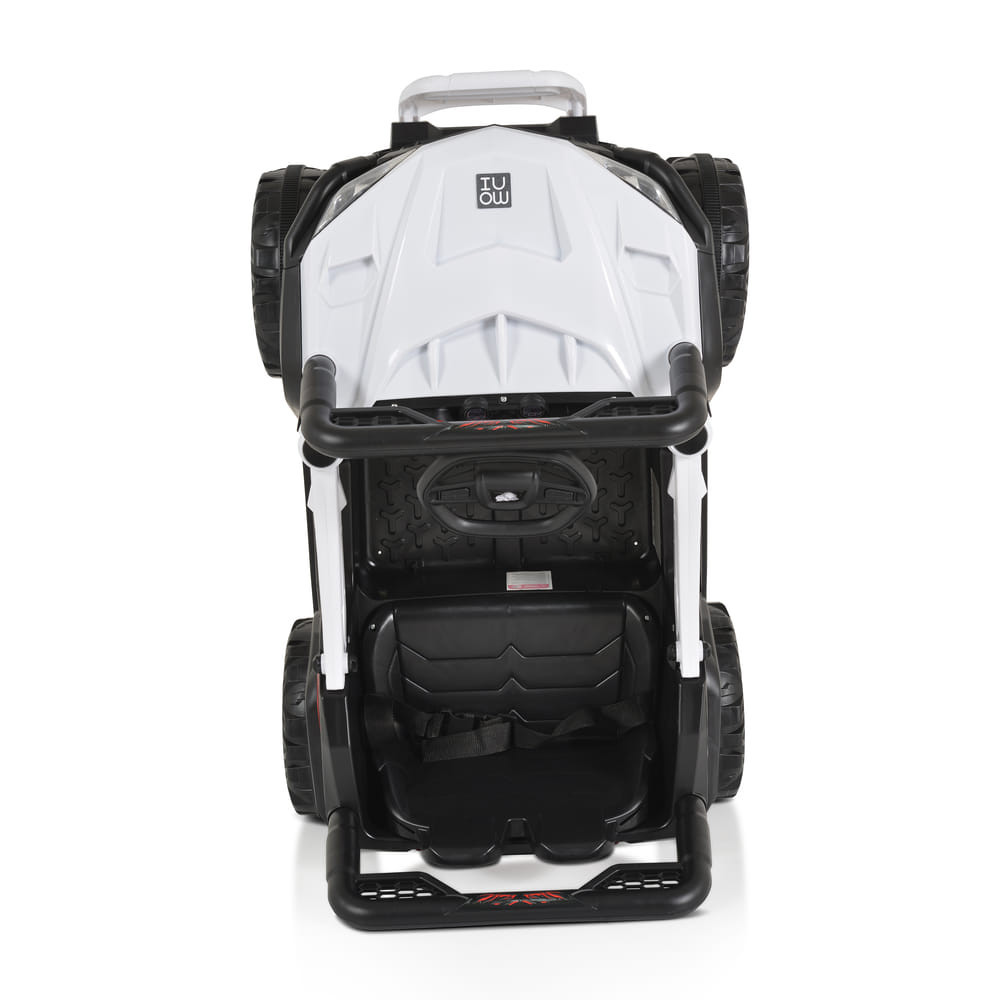 Két motor; Műanyag kerekek; Első, hátsó és felső lámpák; BE / KI kapcsoló; Zenelejátszó USB, MP3, zenei funkciókkal;