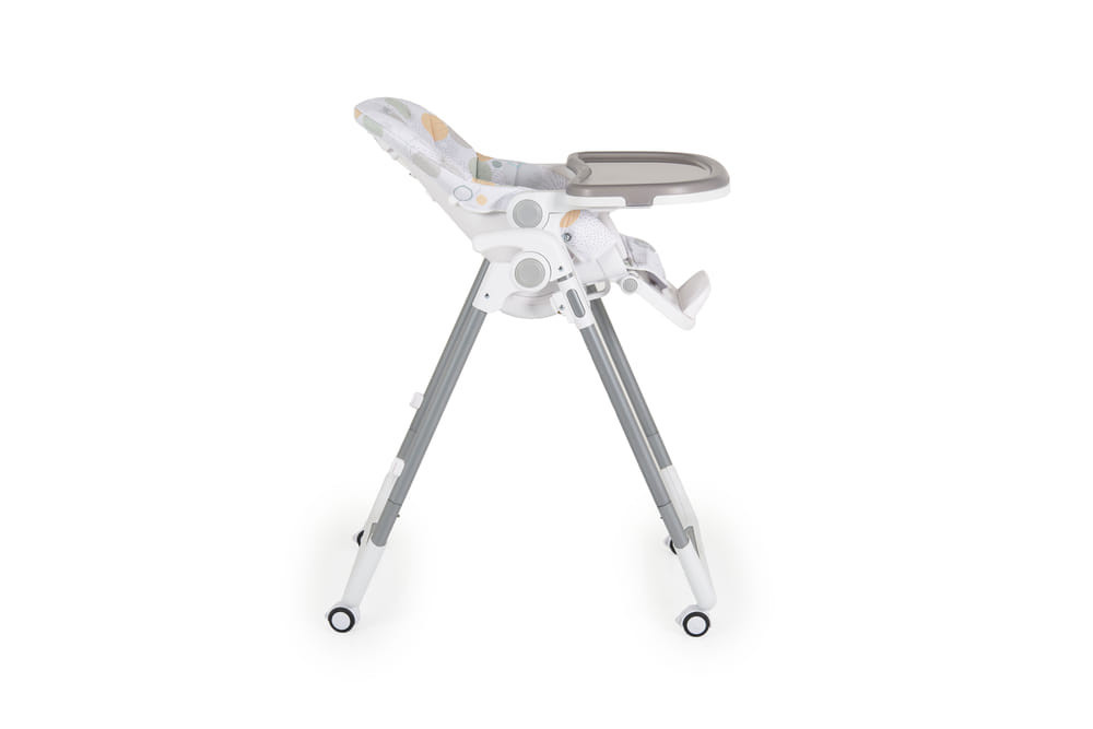Bueno multifunkcionális etetőszék: 6 magassági szinttel, 5 háttámla pozícióval, 3 lábtámasz dőlésszöggel, 3 kétrétegű adagolótálcával, 5 pontos biztonsági rendszerrel rendelkezik, állítható övekkel.