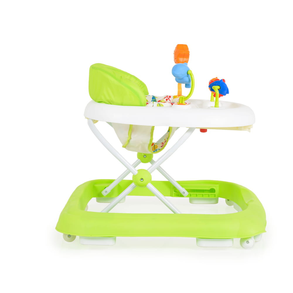 A zöld színű járássegítő 3 pozícióban állítható magassággal rendelkezik,