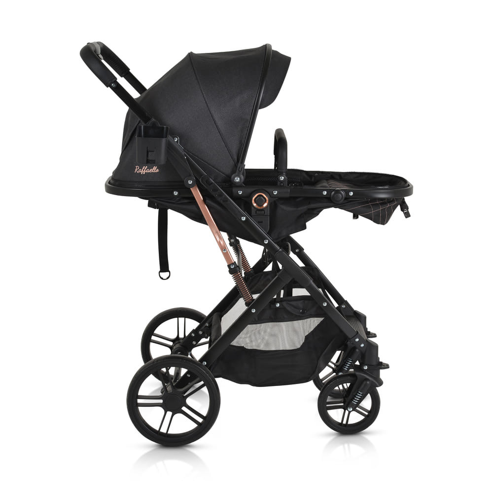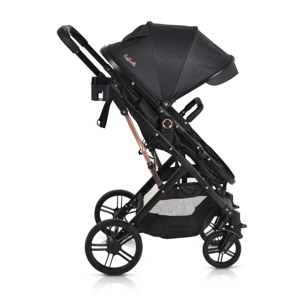 Fém váz.Megfordítható ülés.Levehető karfa.Egy kézzel összecsukható rendszer.Ötpontos heveder.Forgó első kerék irányrögzítéssel.2*7“+2*10“EVA kerekek.R129 Autóülés illeszthető