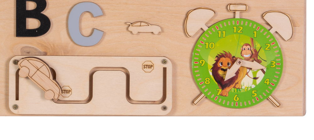A Montessori Matatófal Közép 50x37,5cm Órás, Fiús játék kiváló választás a kisfiúk számára, akik szeretik a színes, mozgó és forgó dolgokat. A játék tanulás mellett szórakozást is nyújt a gyerekeknek. A deszka különböző elemei, mint a színes fogaskerekek, cipzárok, forgó kerekek és a két féle tépőzár, mind hozzájárulnak a gyermek finommotoros képességeinek fejlesztéséhez. A játék interaktív és oktatási tevékenységeket kínál a gyermekek számára. A fa anyaga miatt tartós és hosszú ideig használható.