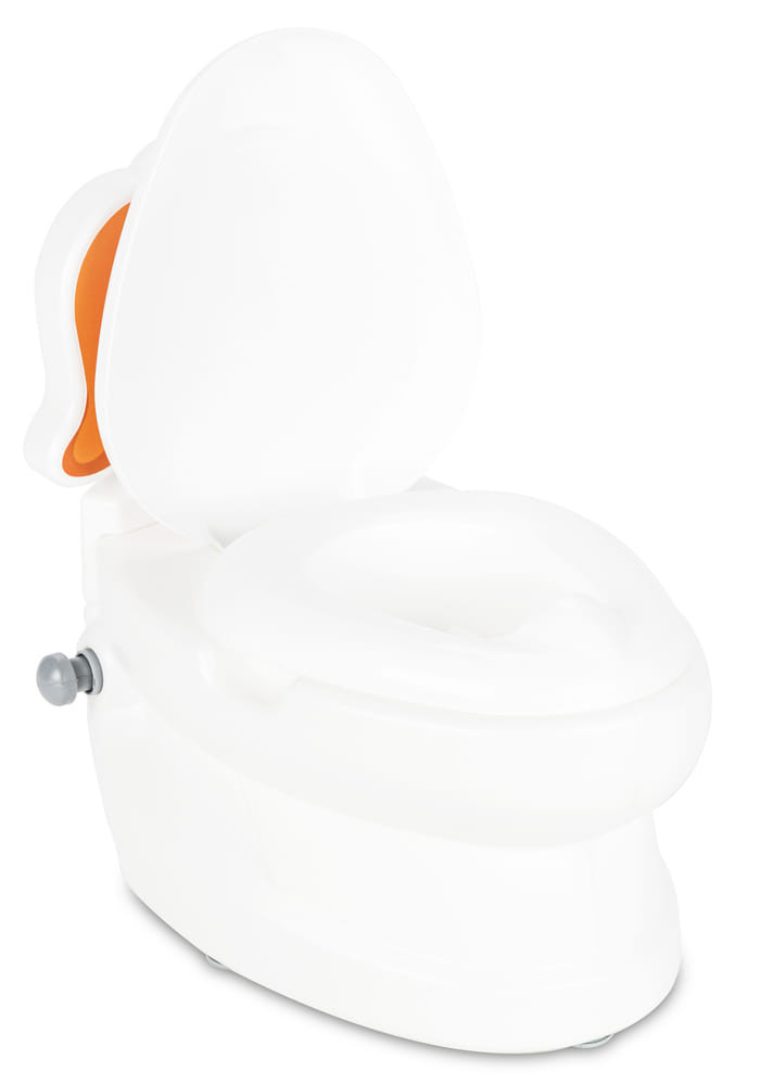 Maximális terhelhetőség 25 kg. Zenei és fény funkció. Ötpontos csúszásmentes talp. Eltávolítható tartály. Fedél nyitási és zárható lehetőséggel. Kényelmes ülés ergonomikus kialakítással. WC-papír tartó. Festékek és anyagok biztonságosak a gyermek egészségére nézve.