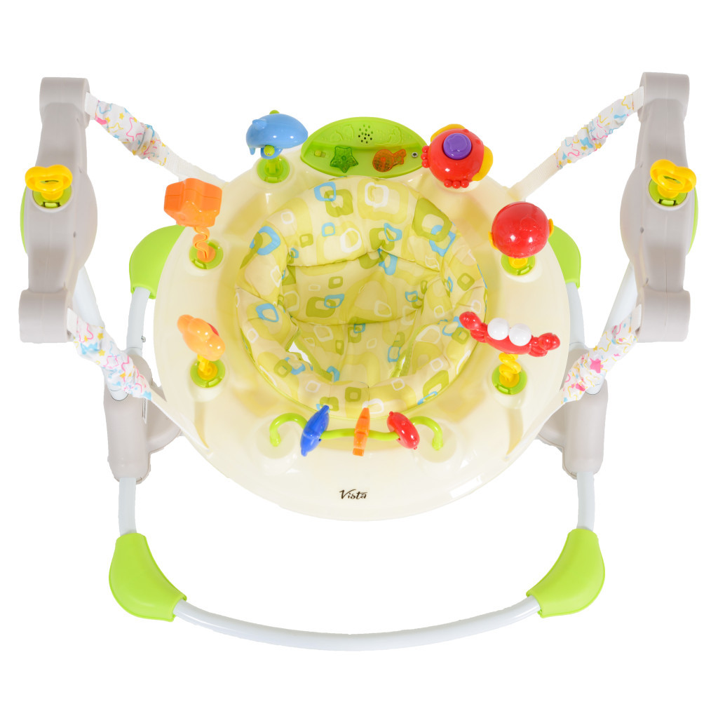 A Vistát úgy tervezték, hogy gyermeke biztonságosan ugrálhasson a lábát használva, miközben a textilszőnyegen szórakozik. A gyengéd fel-le mozgás