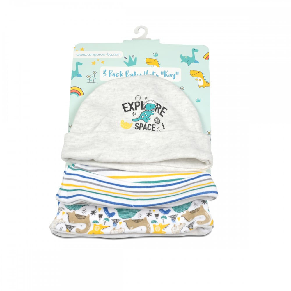 Kay sapkák 3db/cs fiús, mind3 db egy méret, 0-3hóig ajánlott, 100% pamut anyagból, aranyos mintákkal