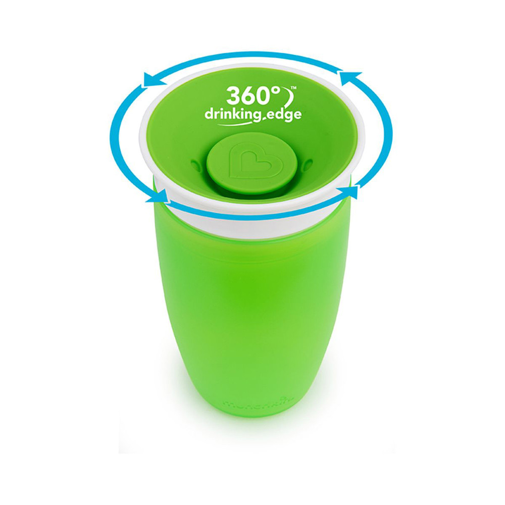 A Munchkin Miracle Cup egy 360 fokos itatópohár, amelynek peremérõl bárhonnan ihat a gyermek, nem kell aggódni a csöpögés miatt. Speciális szelepes teteje használat után automatikusan visszazár.