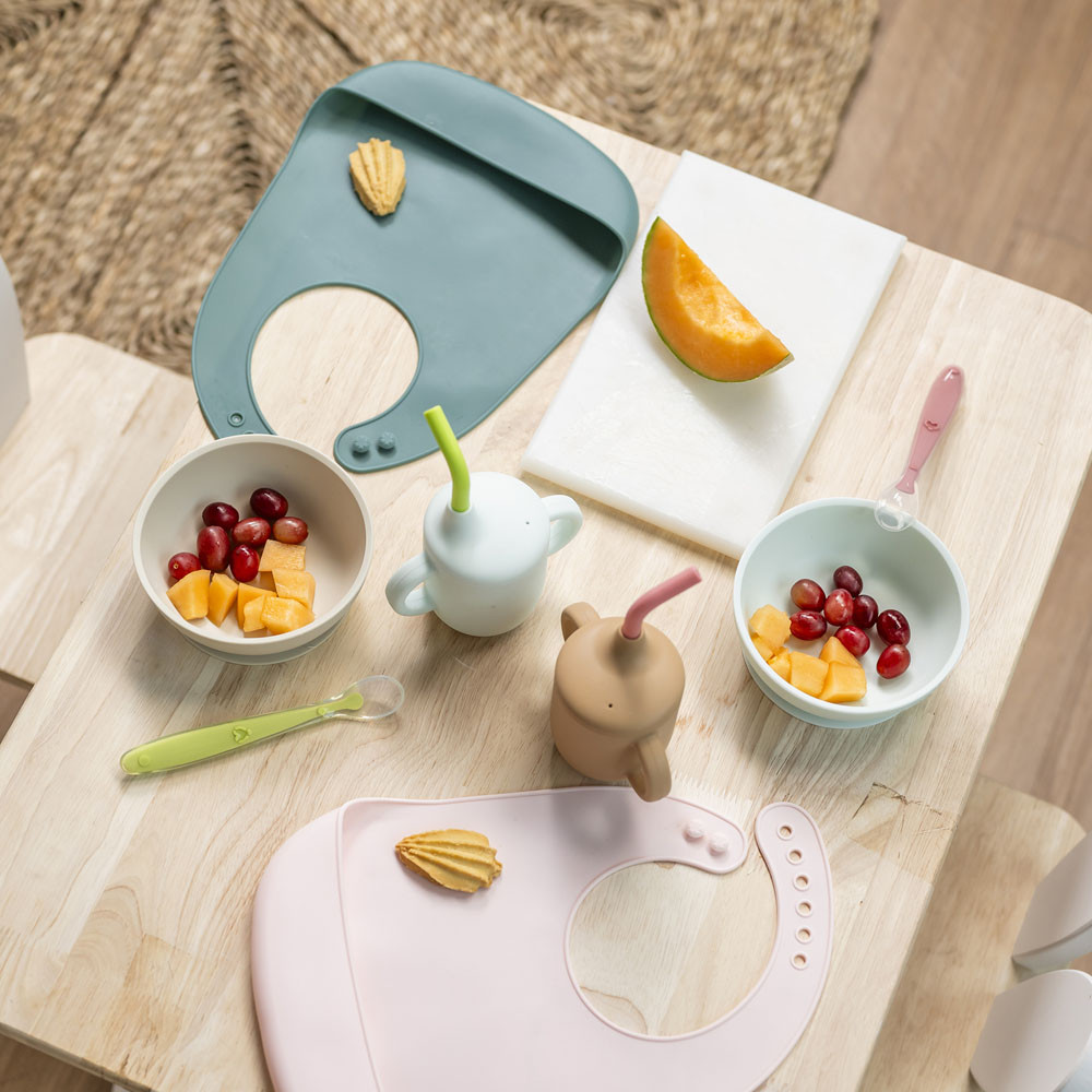 Nattou étkészlet szilikon 4 részes ivópohárral zöld