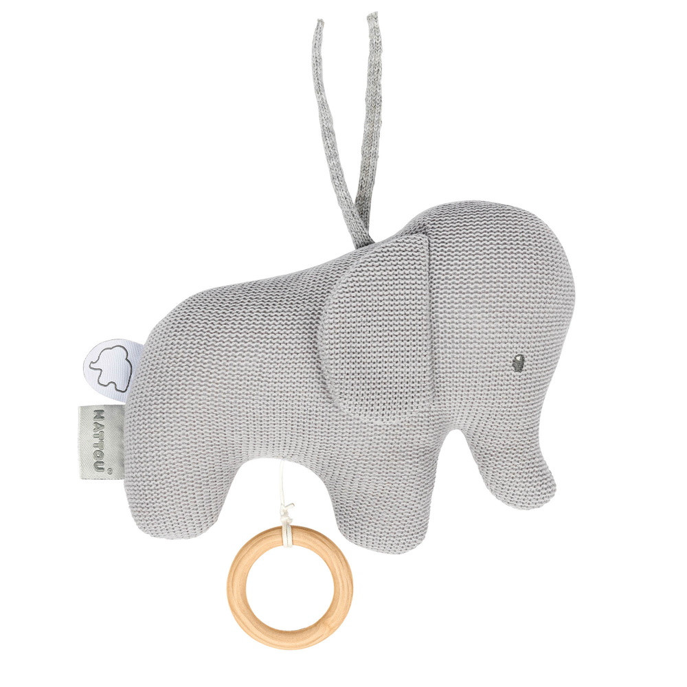 Nattou felhúzós zenélõ játék pamut kicsi Tembo - Elefánt kötött szürke