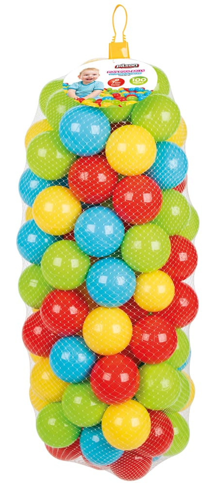 PILSAN labda SZETT hálóban, 7cm-es kislabdákkal, 100 db színes puha labda