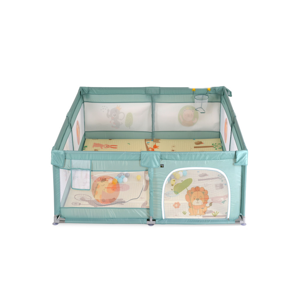 MONI Gamezone összecsukható járóka szőnyeggel, 60 labdával 120x120 menta