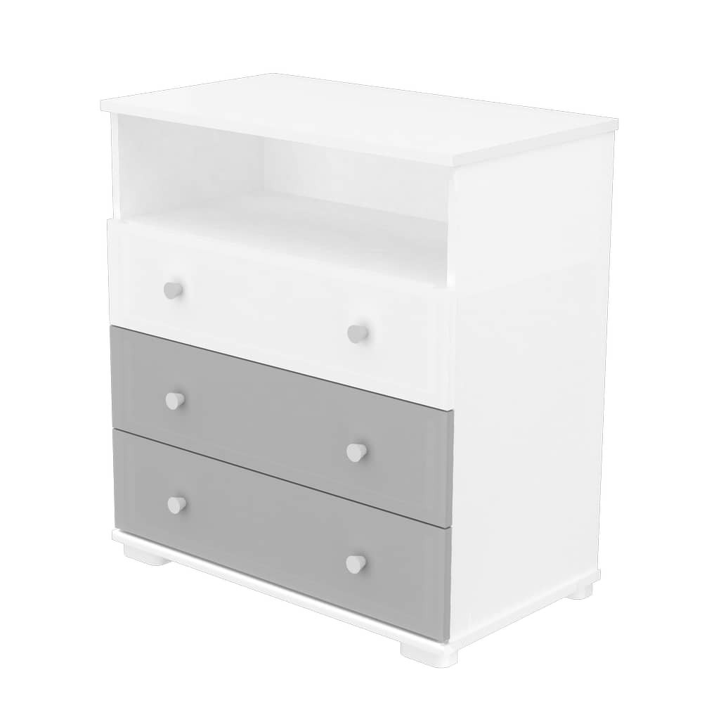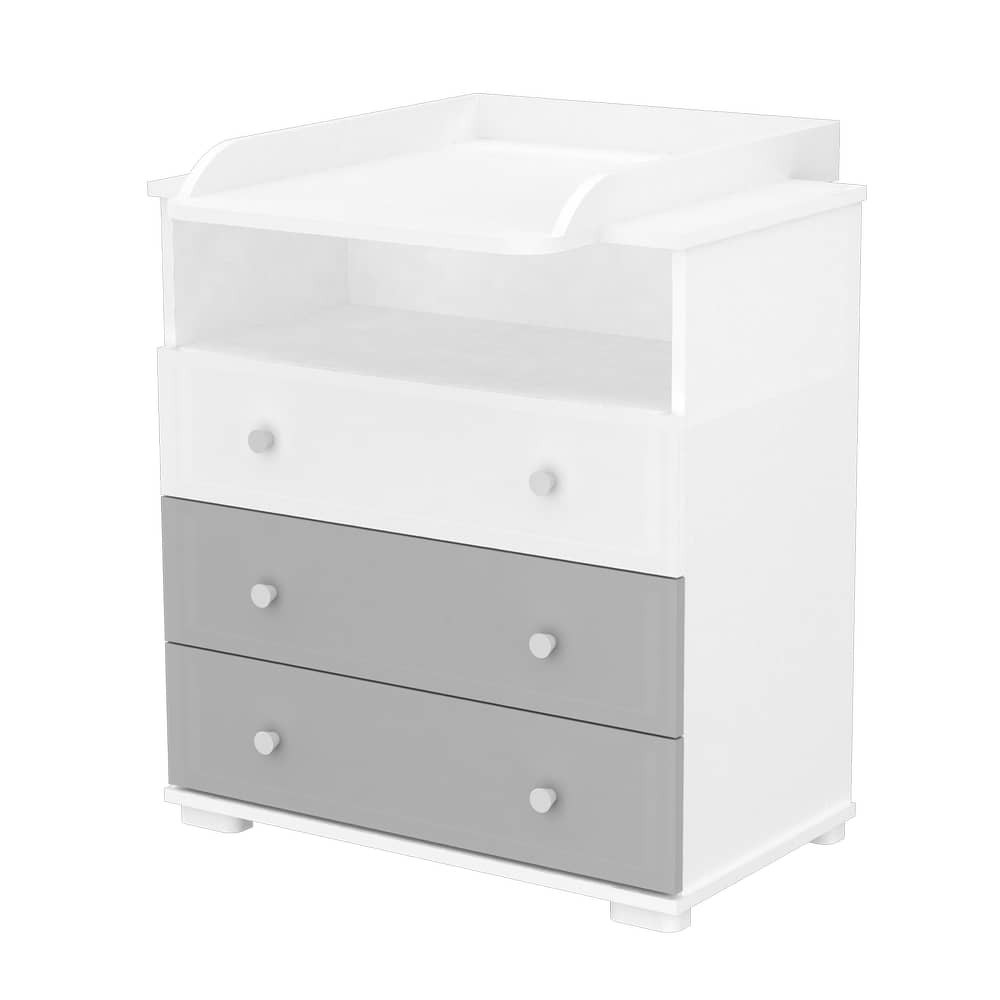 Egy sokoldalú, minden igényt kielégítő pelenkázószekrény, mely a legideálisabb választás kisebb szobák berendezése esetén. Egyszerre szolgál nyitott polcos részel és fiókokkal, amik kiválóan pakolhatóak, jól átláthatóak és remekül rendszerezhetőek, mely igen fontos ha a kicsik holmiairól van szó.