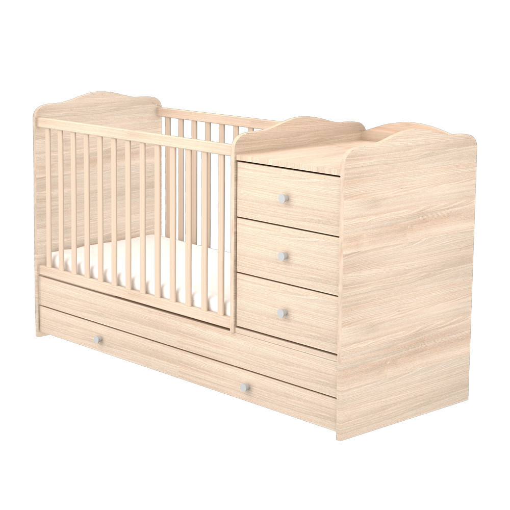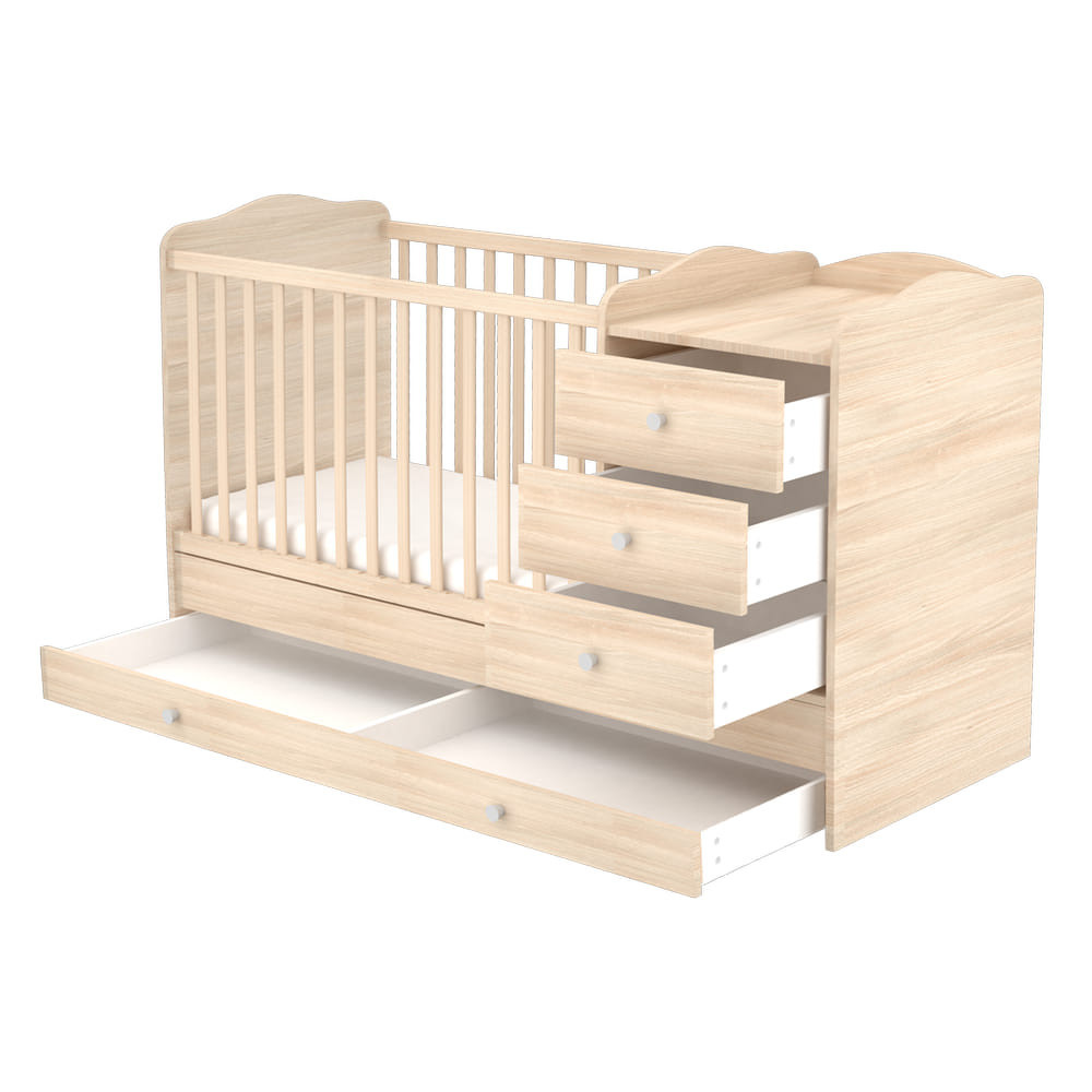 Kombinált kiságyunk megfelelő választás kisebb babaszobák berendezése során, hiszen egyszerre kombinálja a klasszikus rácsos kiságyat a pelenkázószekrénnyel, ám jóval kisebb helyet elfoglalva, mint a két bútordarab külön-külön.