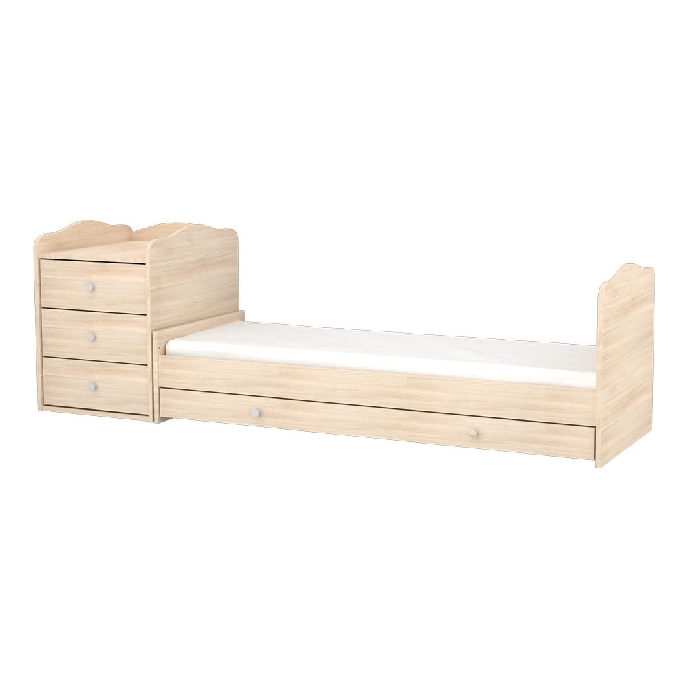 A kiságy rácsos-babaágyként körülbelül 3 éves korig (max. 15 kg), junior gyermekágyként pedig körülbelül 12 éves korig használható. A gyerekágy az oldalrácsok és a pelenkázószekrény eltávolítása után egy ifjúsági heverővé és egy éjjeli szekrénnyé alakítható. Az ágy könnyedén átalakítható, amihez nincs szükség pótalkatrészek megvásárlására, ezek a termékkel együtt járnak.